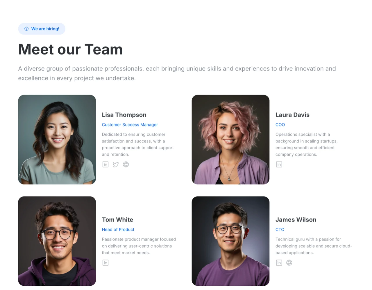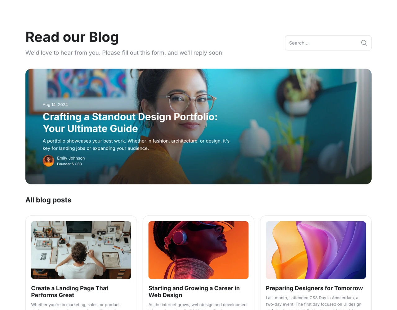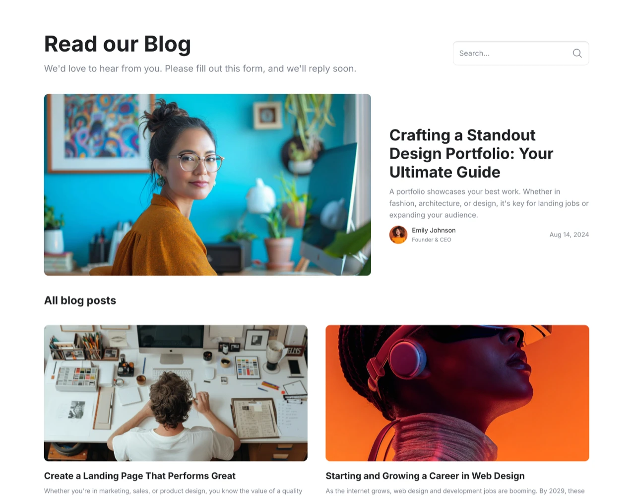 Explore prebuilt Framer website pages like landing pages, blogs, team, contact, and about pages. Crafted with the Frameblox UI kit, these templates help you quickly create and launch modern sites. Available in light and dark modes.