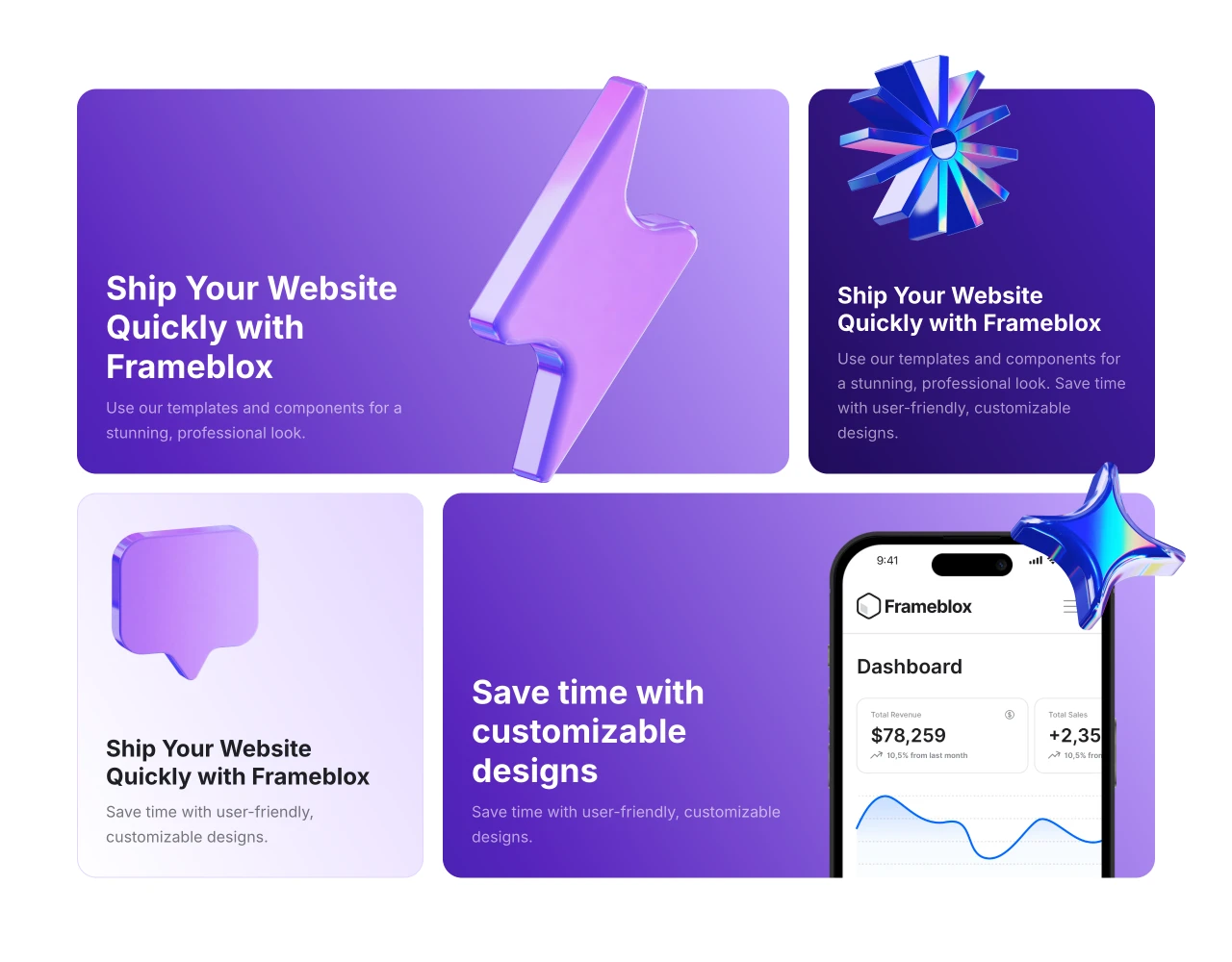 The Frameblox UI kit provides all you need to build websites quickly, with ready-made pages, components, and templates, saving you time and money. Publish today!