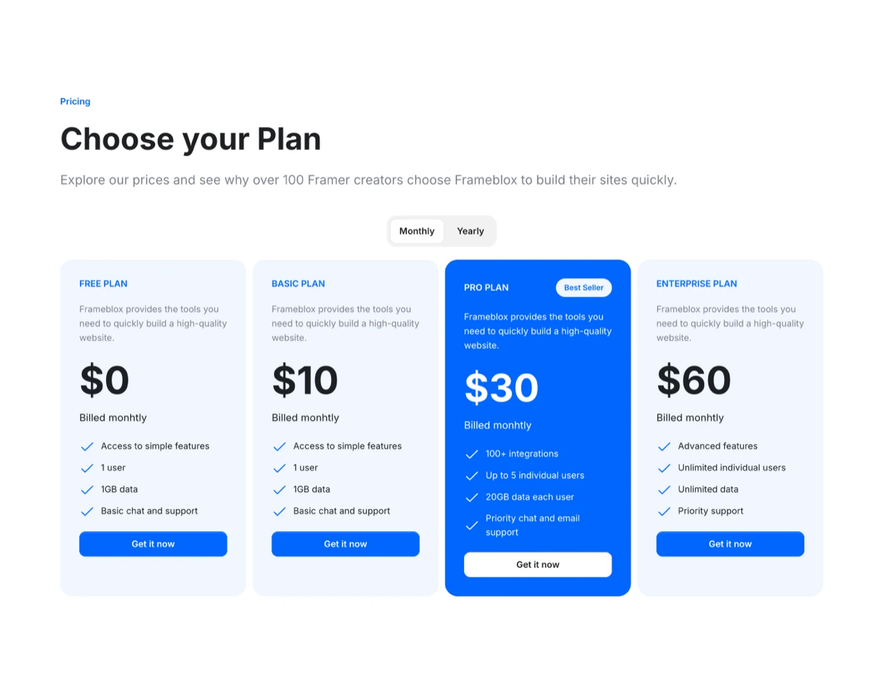 New Framer Components daily. We design and share new website section components for Framer using the Frameblox UI kit and Plugin. With Frameblox Pro access, you can copy and paste directly into your website.